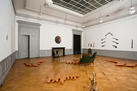 Vue partielle de l’exposition Huis clos, salle Crosnier, Palais de l’Athénée, Genève. (Détails en bas de page)