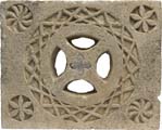 Oculus (aérateur). Ottoman, XIXe siècle. Calcaire avec incrustation. Haut. 35 cm, larg. 43 cm, épaiss. 7cm. Gaza. © Département des Antiquités de Gaza. Photo : Chaman atelier multimédia, S. Crettenand