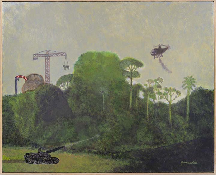 La jungle est le théâtre où José Gamarra raconte l’histoire des hommes et de leurs pouvoirs. Dans ses œuvres, passé colonial, religion et influence américaine se croisent de manière surprenante.Une exposition anthologique à Xippas Genève.