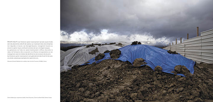 Gabriela Löffel a étudié le Centre fédéral pour requérant·es d’asile (CFA) du Grand-Saconnex, ouvert en 2025 et fortement controversé. L’artiste a eu accès au chantier et a photographié le bâtiment ainsi que son environnement. Elle a prolongé sa recherche en documentant la gestion privée et les réseaux financiers derrière ces centres, révélant les liens entre politique d’asile et spéculation économique. Son projet, intitulé Sans titres (image ci-dessus), combine images et textes définissant à la fois les notions de migration, d’asile et de marché financier, pour montrer comment l’investissement et la privatisation interfèrent directement avec la politique migratoire suisse.