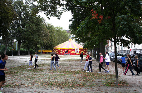 La place Sturm le 7 octobre 2013, la hauteur du Pavillon de la danse sera approximativement celle du chapiteau du Bateau Genève installé provisoirement. @GenèveActive.