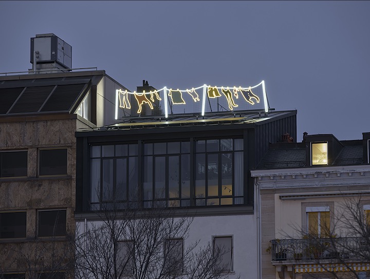En 2007, un premier néon s’allume sur un toit : YES TO ALL de Sylvie Fleury. Un signal discret, mais déterminant. La même année, Breath de Jérôme Leuba lui répond, avant d’être démonté dix ans plus tard. Puis d’autres œuvres suivent, une à une, jusqu’à composer une constellation urbaine au-dessus de la plaine de Plainpalais : une galerie à ciel ouvert, sans murs ni horaires, offerte à tous. Le 15 janvier 2026, deux nouvelles pièces — Il y a un trou dans le réel de Dora García et LIGNE-DE-LINGE de RM — viennent s’ajouter à ce ciel réinventé. Vingt-cinq après la première intuition, Plainpalais raconte désormais une histoire faite de patience, d’écoute et de lumière.
