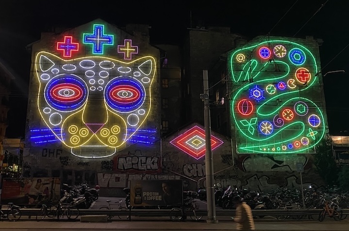 Depuis l’automne 2025, cette interrogation s’est transformée en controverse. L’annonce par courriers aux artistes du démontage prochain de plusieurs œuvres emblématiques a suscité une vive réaction citoyenne, artistique et politique. En jeu : le devenir d’installations devenues familières du paysage urbain, notamment certaines enseignes du projet Neon Parallax à Plainpalais, ainsi que Pinta Cura de Frédéric Post, fresque lumineuse monumentale visible depuis la gare de Cornavin.