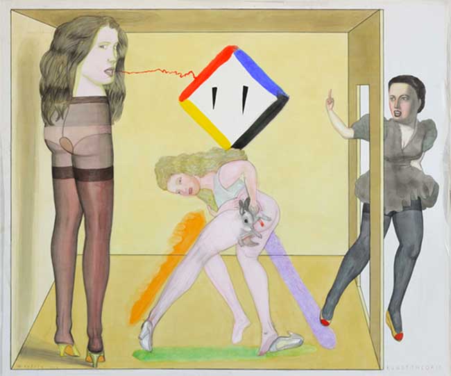 Jean-Baptiste Bonjour, « Italienne en costume », huile, vers 1950. David Hominal, « Détail », 2015. Photos : J.M.