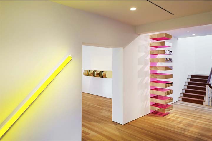 De gauche à droite :The diagonal of May 25, 1963 (to Constantin Brancusi) de Dan Flavin (1963), et deux Untitled de Donald Judd (1972 et 1969). Photo : Courtoisie Christie’s.